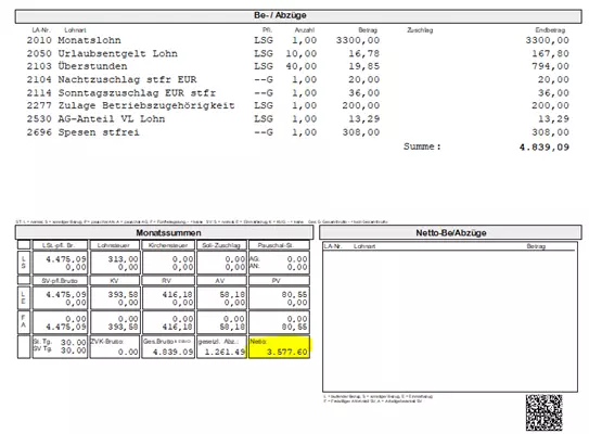 Rechenbeispiel Nahverkehr, Steuerklasse 1